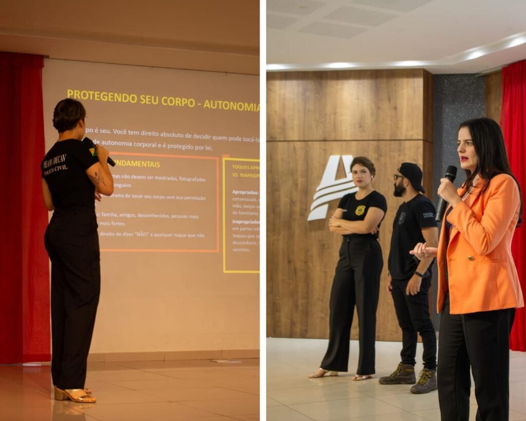 O evento contou com uma abordagem multidisciplinar. Enquanto um oficial investigador desmistificou o papel da polícia, posicionando-a como uma aliada acessível e não apenas uma figura de autoridade, uma psicóloga da instituição orientou os jovens sobre o reconhecimento de “toques desconfortáveis” e limites corporais, o clima era de acolhimento.