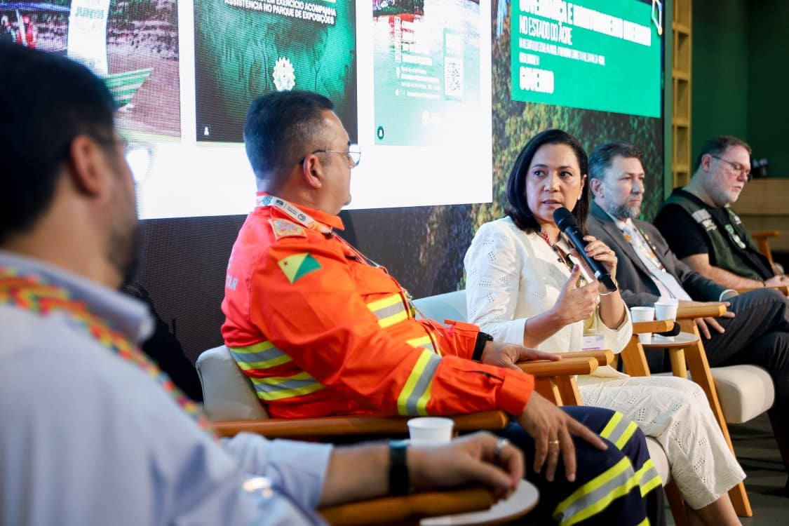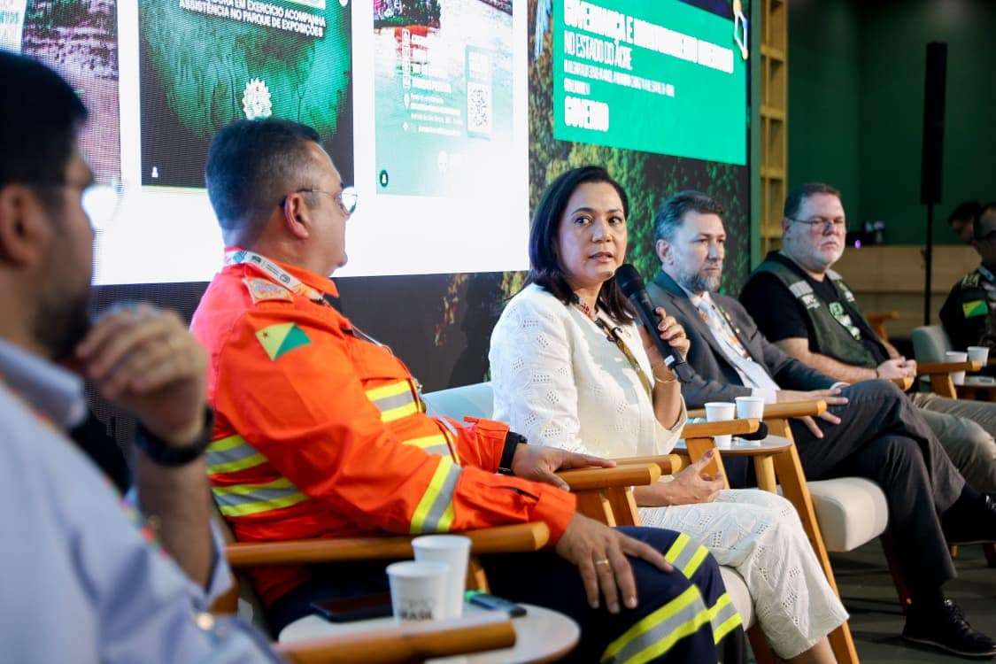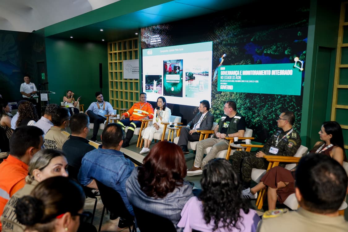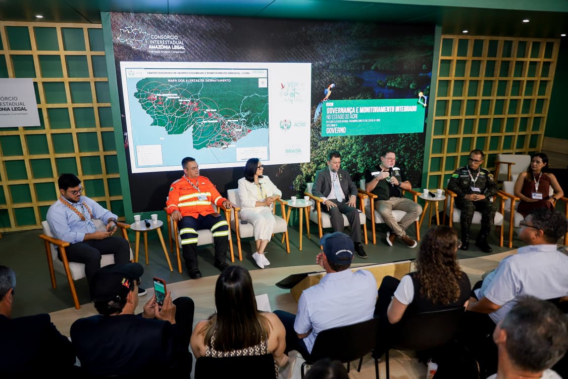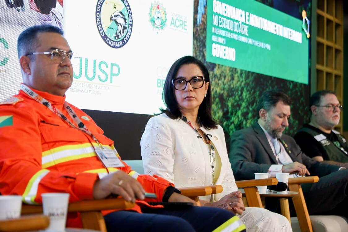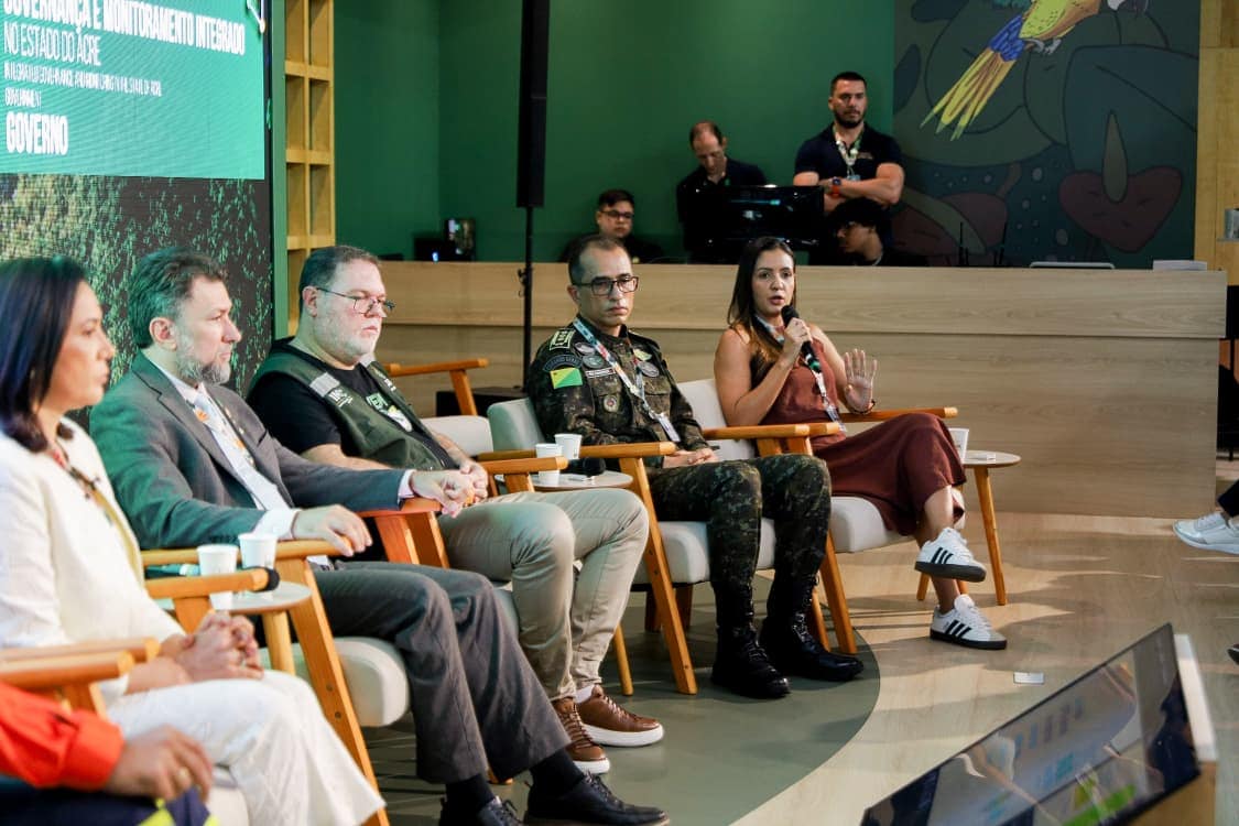 O governo do Acre apresentou nesta terça-feira, 18, no Hub Amazônia, na Zona Verde da COP30, o painel “Governança e Monitoramento Integrado do Estado do Acre”, iniciativa que evidencia um modelo inovador de comando, controle territorial e resposta a ilícitos ambientais, adotado pelo Estado. A apresentação reuniu representantes de órgãos de segurança, meio ambiente e comunicação, além da presença da vice-governadora Mailza Assis, que encerrou o painel destacando os resultados consolidados e a importância da continuidade das parcerias e financiamentos.