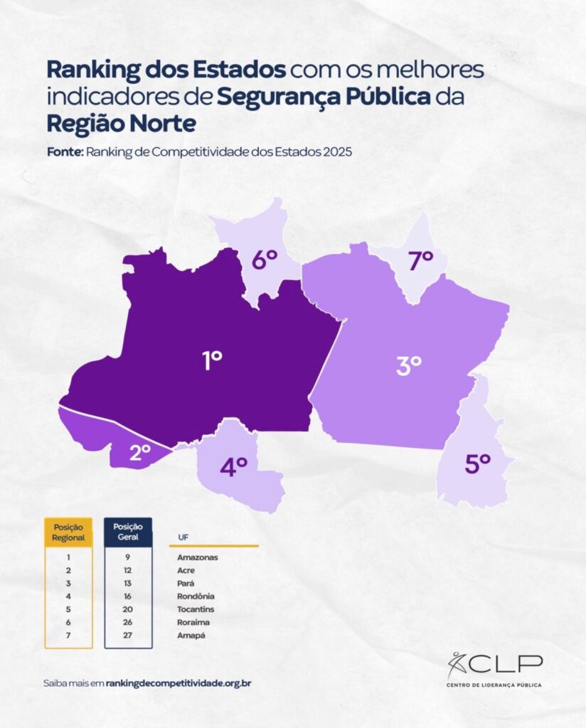 O estado do Acre obteve desempenho relevante no pilar de Segurança Pública do Ranking de Competitividade dos Estados em 2025. A pesquisa divulgada pelo Centro de Liderança Pública (CLP) apresenta a colocação do Acre em 2º lugar entre os estados da Região Norte. O levantamento evidencia que a preservação dos direitos individuais e a estabilidade institucional são pilares fundamentais para o desenvolvimento econômico e o bem-estar social.