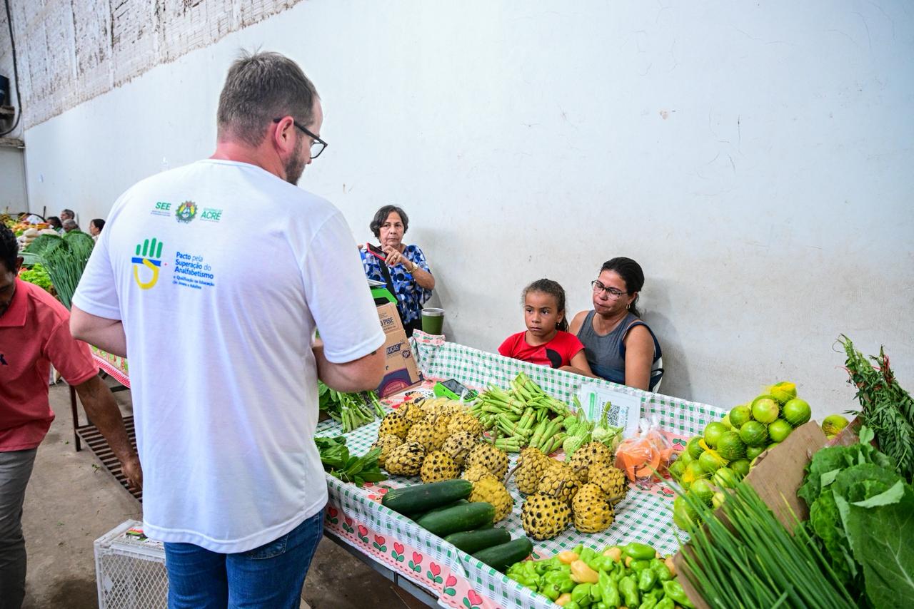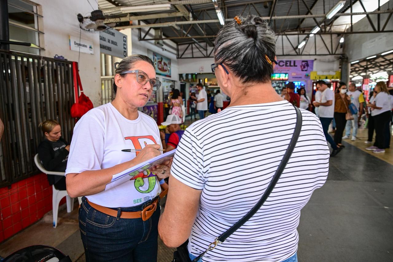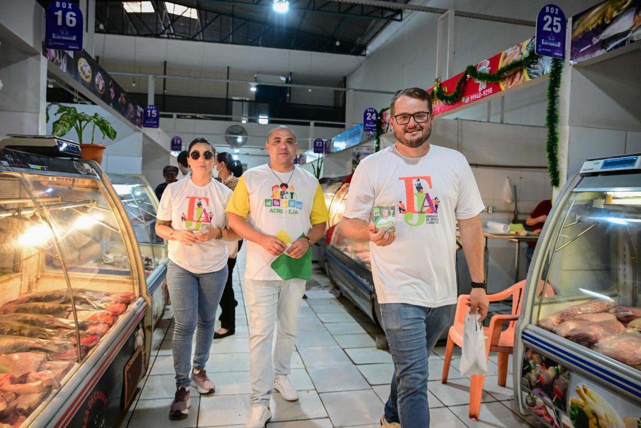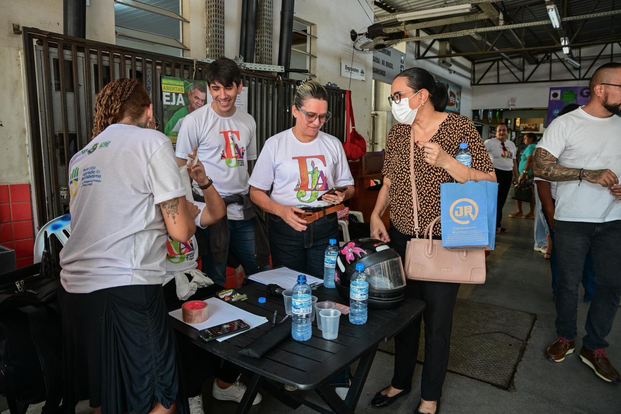 A equipe da Educação de Jovens e Adultos (EJA) da Secretaria de Estado de Educação e Cultura (SEE) realizou, na manhã desta segunda-feira, 2, uma mobilização no Terminal Urbano, no Mercado Elias Mansour e nas principais ruas do centro de Rio Branco.