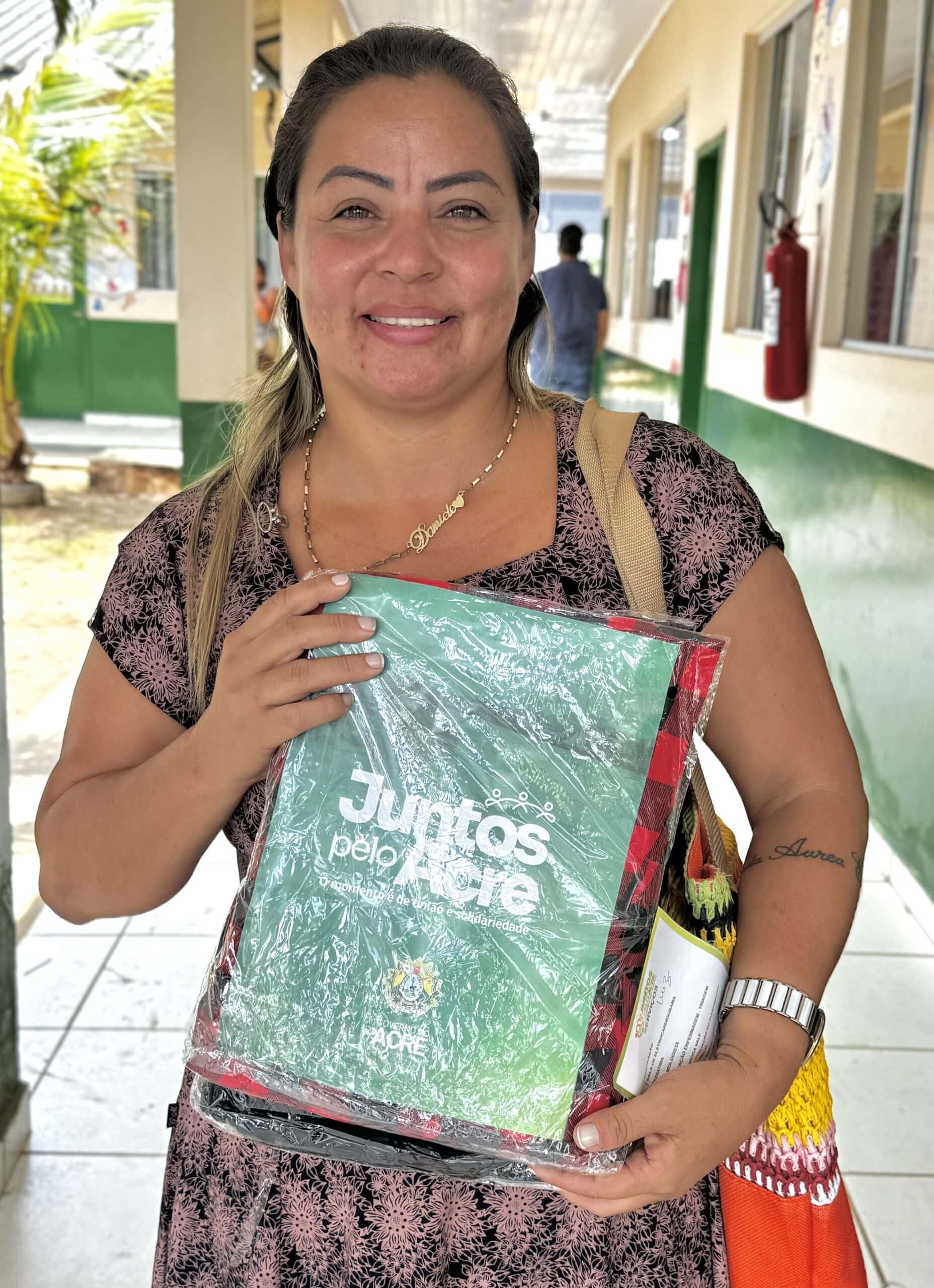 Daniele é uma das mais de 100 mil mulheres impactadas pelo Vestuário Social, projeto dentro do Juntos Pelo Acre, idealizado pela vice-governadora Mailza Assis, também secretária de Estado de Assistência Social e Direitos Humanos, que conta roupas novas doadas pela Receita Federal e Correios para mulheres em situação de vulnerabilidade.