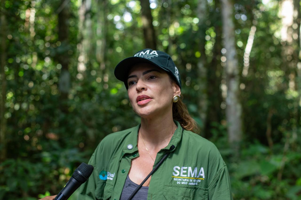 Secretária adjunta da Sema, Renata Souza, destaca importância de conhecer iniciativas sustentáveis das comunidades que vivem na Reserva. Foto: Dhárcules Pinheiro/Secom