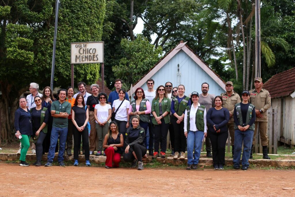 Os participantes ainda puderam acompanhar de perto o processo de coleta do látex e da castanha, além das técnicas tradicionais de manejo florestal utilizadas pelas comunidades extrativistas. Durante a atividade, a comitiva também visitou a casa do líder extrativista e primo de Chico Mendes, Raimundo Mendes, conhecido popularmente como “Raimundão”.