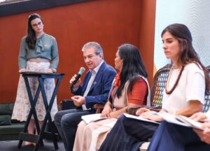 A secretária de Povos Indígenas, Francisca Arara, também foi painelista no evento e falou aos presentes sobre Projeto Regional das Secretarias de Povos Indígenas. Além dela, a presidente do Instituto de Mudanças Climáticas (IMC), Jaksilande Lima e a secretária de Comunicação, Nayara Lessa, que ocupa a função de coordenadora da Câmara de Comunicação do Consórcio Amazônia Legal, estiveram presentes no evento.