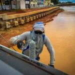 Enquanto não é possível avançar nos serviços em um pilar que apresentou dano, as equipes seguem atuando em outras frentes de trabalho ao longo da estrutura. Entre os serviços em execução estão a limpeza completa, retirada de ferrugem, lixamento e preparação do ferro para receber pintura de proteção.