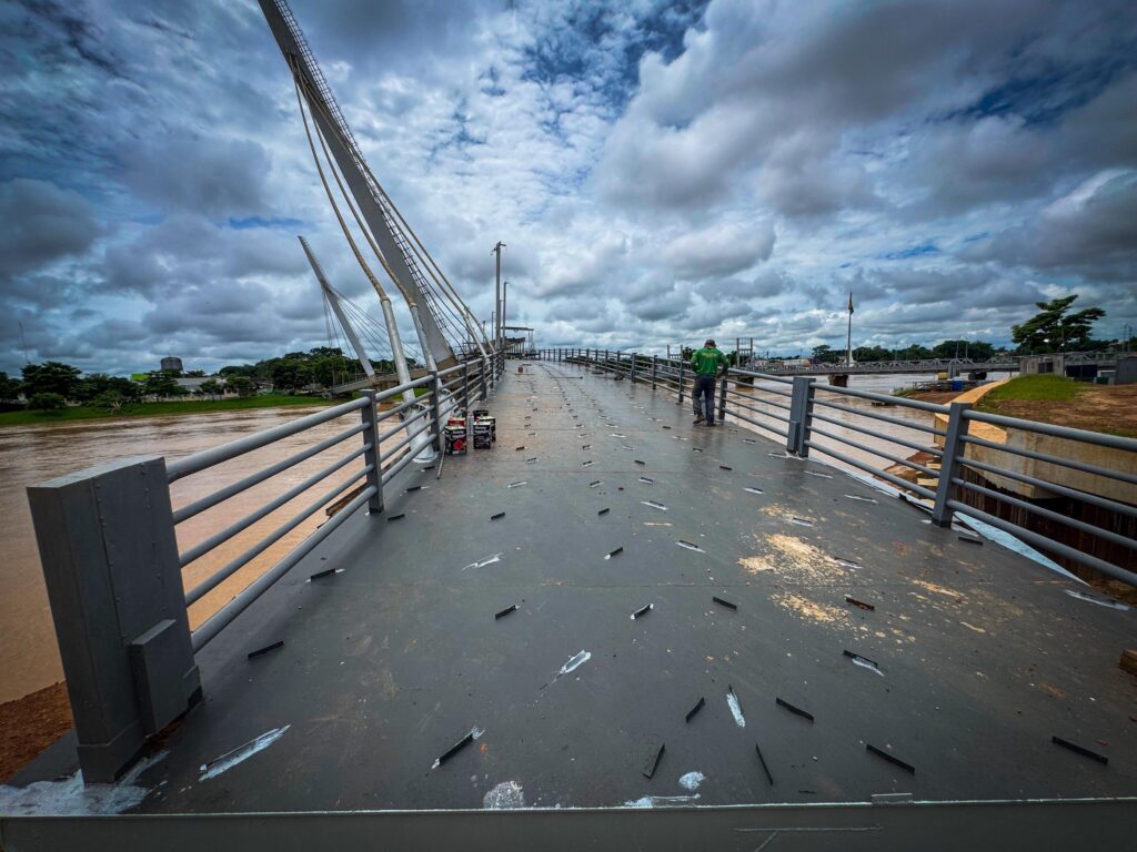 Os serviços também incluem a revisão da iluminação da passarela. Após a conclusão dessa etapa, os estais (cabos de aço) da estrutura serão recolocados, conforme o cronograma técnico da obra.