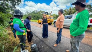 A presidente do Deracre, Sula Ximenes, percorreu o trecho junto com a equipe técnica, acompanhando os últimos pontos que estavam sendo recuperados até a entrada do município. O serviço está concentrado nas áreas mais danificadas da pista.