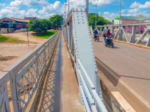 Durante o serviço, as equipes removeram as pichações, fizeram a lavagem da estrutura metálica e a limpeza das laterais e acessos da ponte. Sula Ximenes destacou que a ponte é estrutura histórica e segue sendo utilizada diariamente pela população.