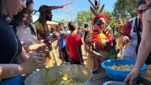 O aroma de pamonha invadiu o 7º Festival Puyanawa, nesta terça-feira, 22, em Mâncio Lima. Mas não era uma pamonha comum. Feita com atsa, a mandioca sagrada para o povo Puyanawa, a receita foi preparada pelos próprios estudantes da Escola Estadual Indígena Ixū̃bãy Rabuī Puyanawa. A iniciativa foi conduzida pela Divisão de Nutrição da Secretaria de Estado de Educação e Cultura do Acre (SEE), dentro do Programa Nacional de Alimentação Escolar (PNAE), e deu origem a um livro de receitas que é, ao mesmo tempo, um manifesto cultural.