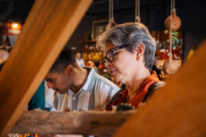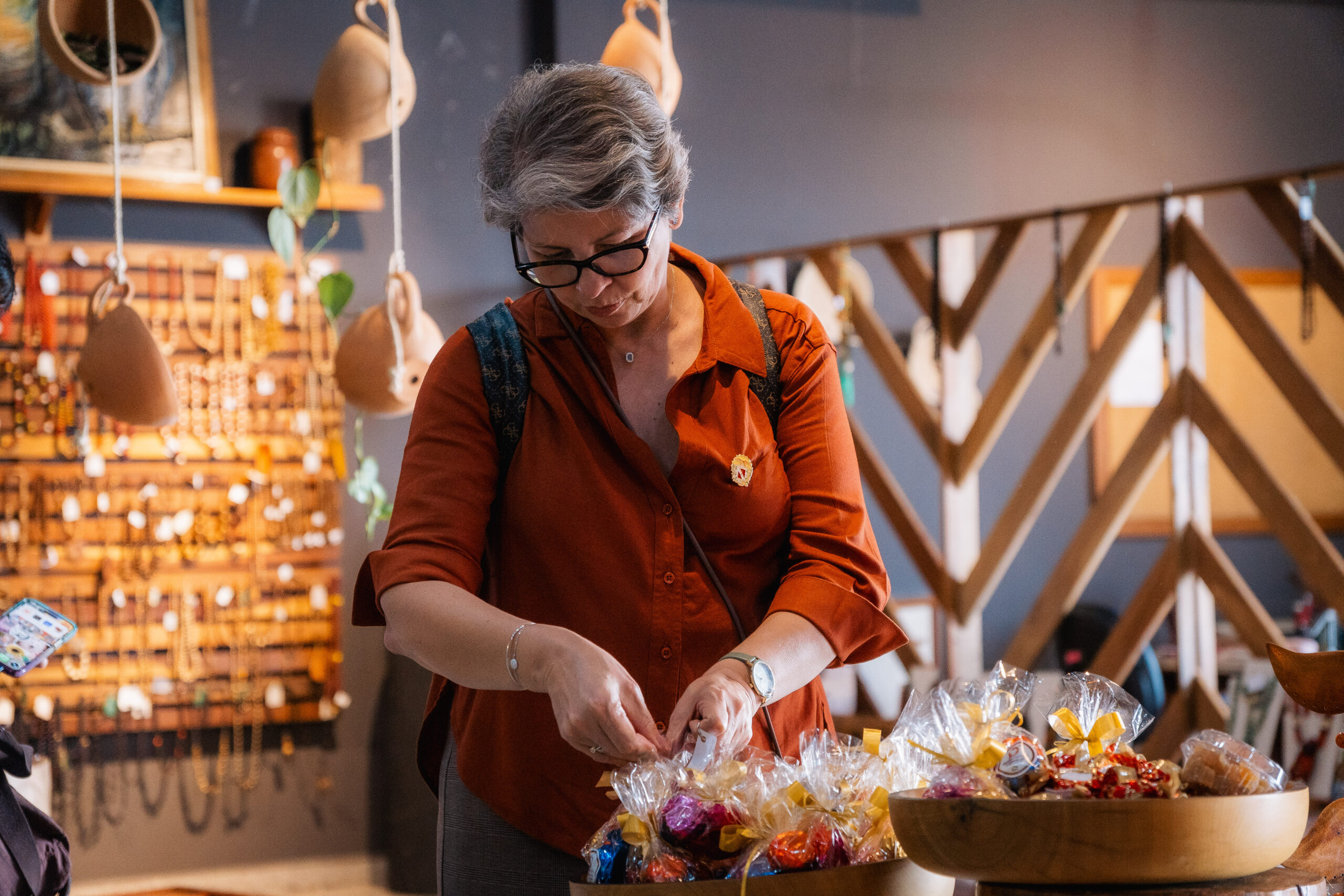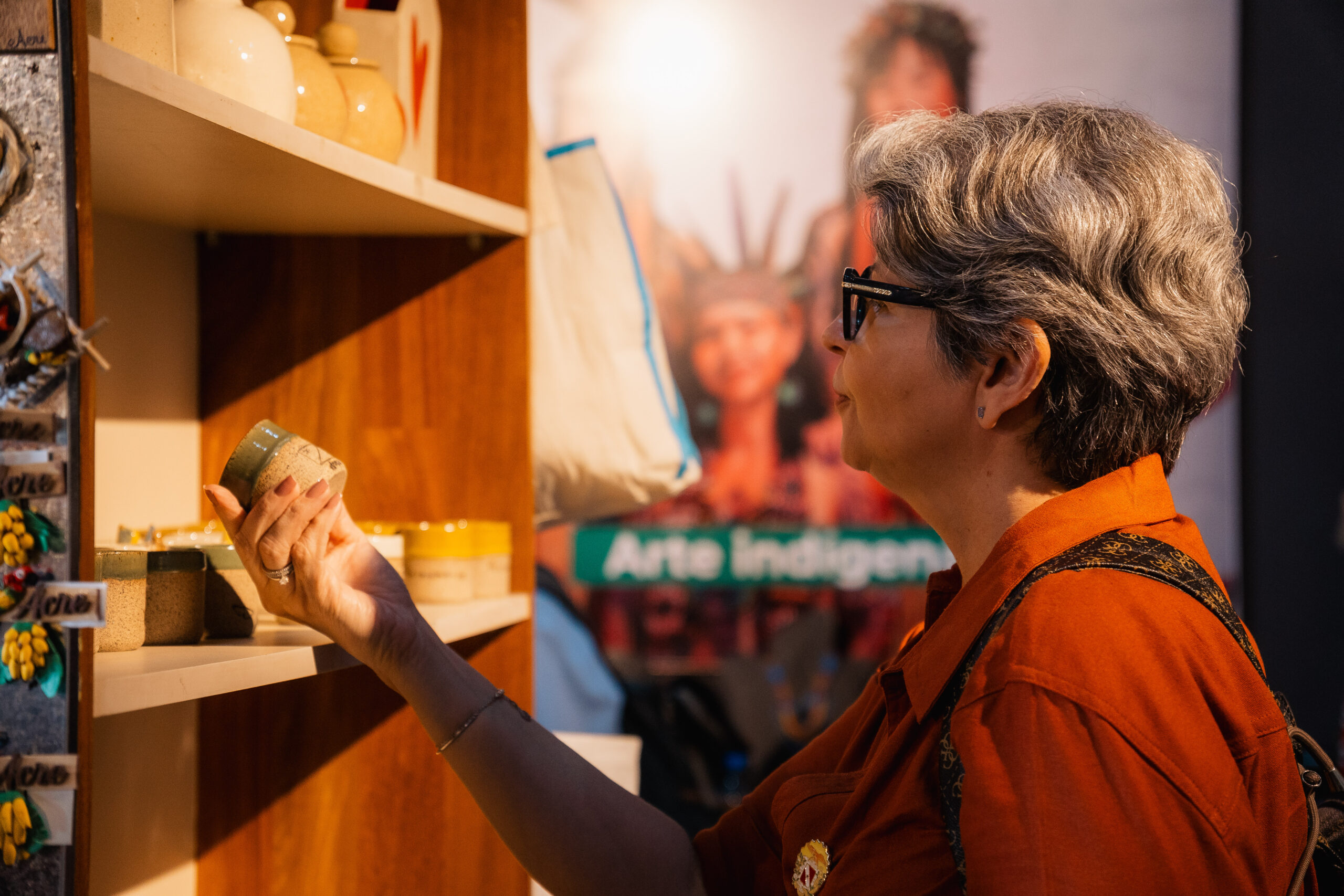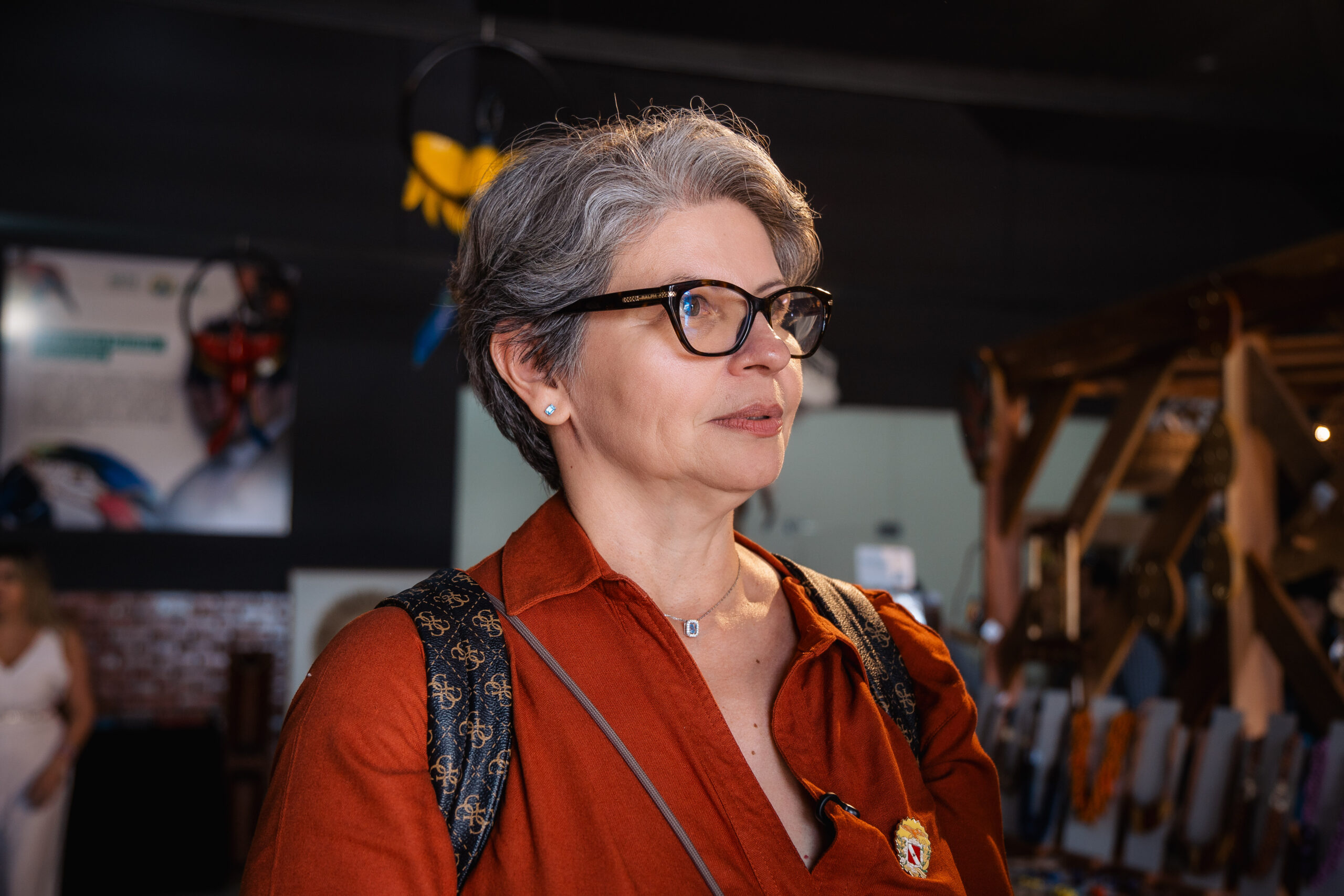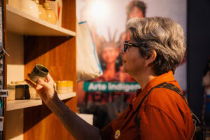 Acompanhando a comitiva, a assessora técnica do gabinete da Secretaria de Meio Ambiente, Clima e Sustentabilidade do Estado do Pará, Andréa Coelho, conta que já esteve no Acre antes e admira o trabalho dos artesãos locais. “Você consegue ter acesso a diferentes produtos de artistas diversos — porque considero esses artesãos verdadeiros artistas. É uma satisfação muito grande acompanhar este grupo, em que a maioria é de outros países, e ver a curiosidade e o encantamento deles”.