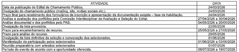 O edital prevê a disponibilização de sete vagas, destinadas a artesãos que desejam expor seus produtos na feira. O evento será realizado no período de 8 a 19 de julho, reunindo expositores de diversas regiões do país. As inscrições se iniciam nesta terça-feira, 24, e seguem abertas até 24 de abril.