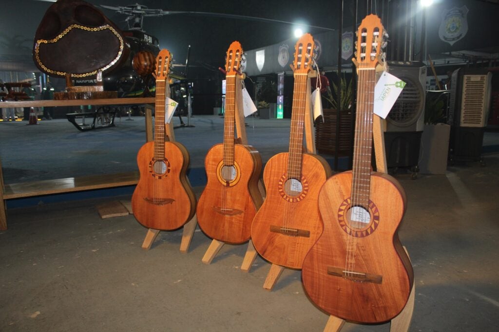 Instrumentos musicais fabricados por detentos são destaque no estande do Iapen na Expoacre