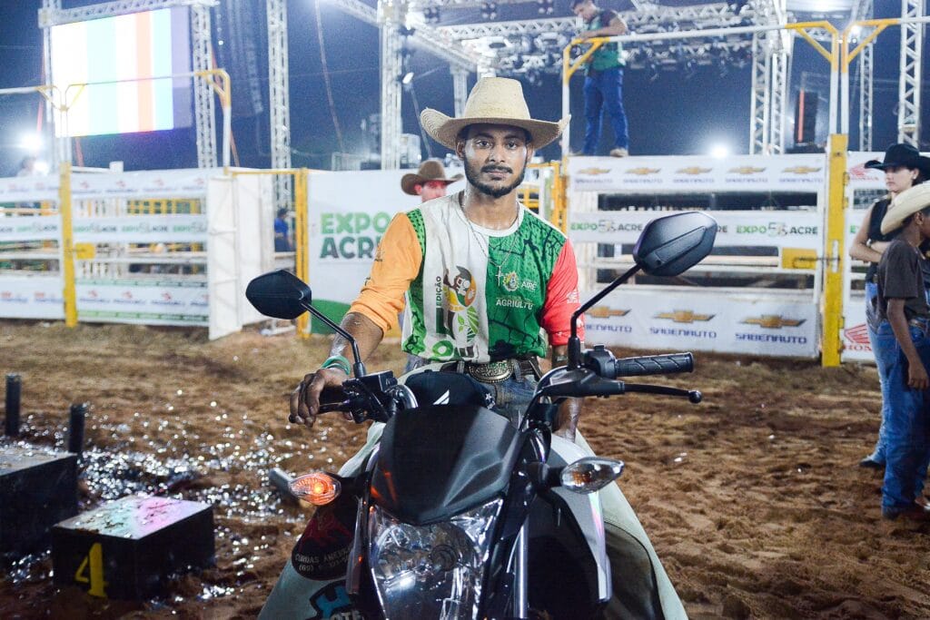 O segundo lugar da grande final do rodeio foi conquistado por Felipe Santos, que levou para casa uma moto 0 km como forma de reconhecimento pelo desempenho de alto nível apresentado durante toda a competição. Após intensas disputas e montarias repletas de técnica, o peão celebrou com emoção a conquista. “A emoção é grande. A sensação de ter montado bem é muito gratificante. No ano passado também obtive um bom desempenho, ficando em quarto lugar. Este ano, consegui subir alguns degraus. Quem sabe, no próximo ano, almejaremos o título de campeão. O governo do Acre merece parabéns e deve continuar valorizando os competidores. A organização da feira e do rodeio foi excelente, nota mil. O Acre precisava de um evento como este. Somos atletas que rodamos o Brasil, representando o estado”, destacou o competidor.