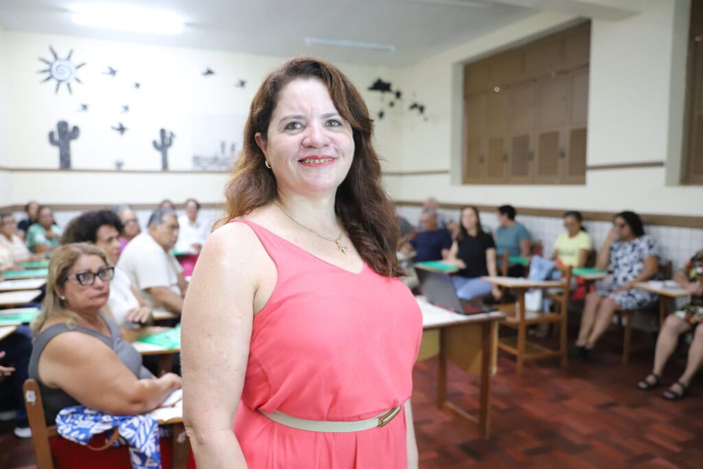 Na Escola Marina Vicente Gomes, no bairro Boa União, a auxiliar de secretaria e biblioteca Rosângela Vieira Torres, de 60 anos, atua há 35 anos na educação e reforça que o aprendizado se reflete diretamente no cuidado com os estudantes.