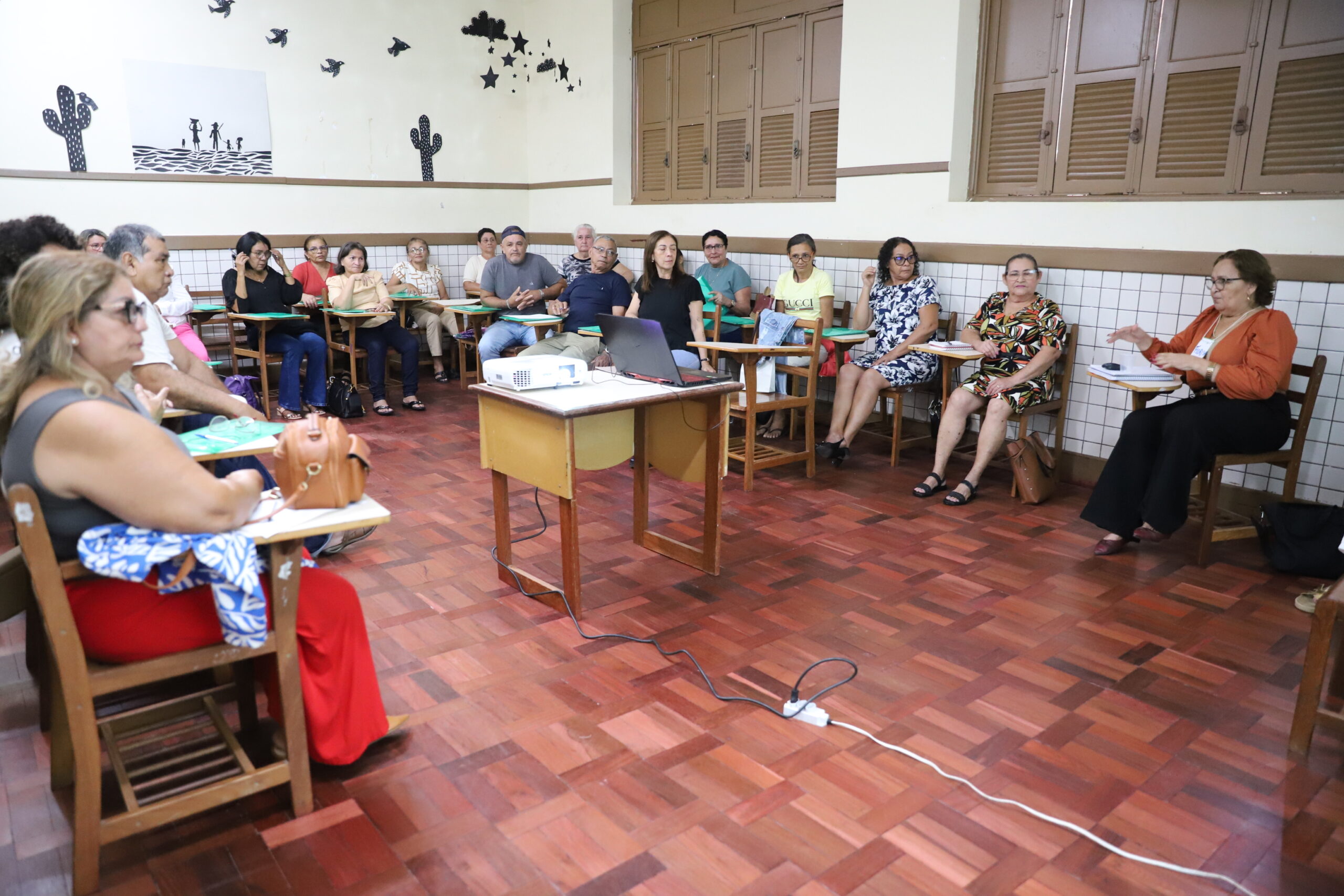 Com foco no clima e na convivência escolar, ética, competências pedagógicas e socioemocionais; agentes de portaria, auxiliares de biblioteca e auxiliares escolares de unidades de ensino da zona urbana e rural de Rio Branco participam, de segunda a quarta-feira, de 2 a 4, de uma Formação Continuada para Servidores Não Docentes, realizada no Colégio Acreano, na capital.