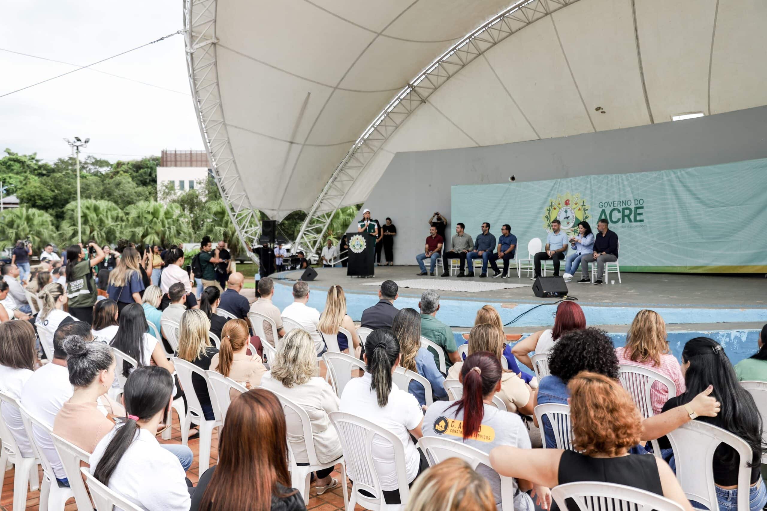 A governadora Mailza Assis assinou, na manhã desta segunda-feira, 13, a ordem de serviço para o início das obras de manutenção, reparos e revitalização de equipamentos e espaços públicos no Parque da Maternidade, em Rio Branco. A solenidade foi realizada na Concha Acústica e marca o início de uma nova etapa de investimentos na infraestrutura urbana da capital.