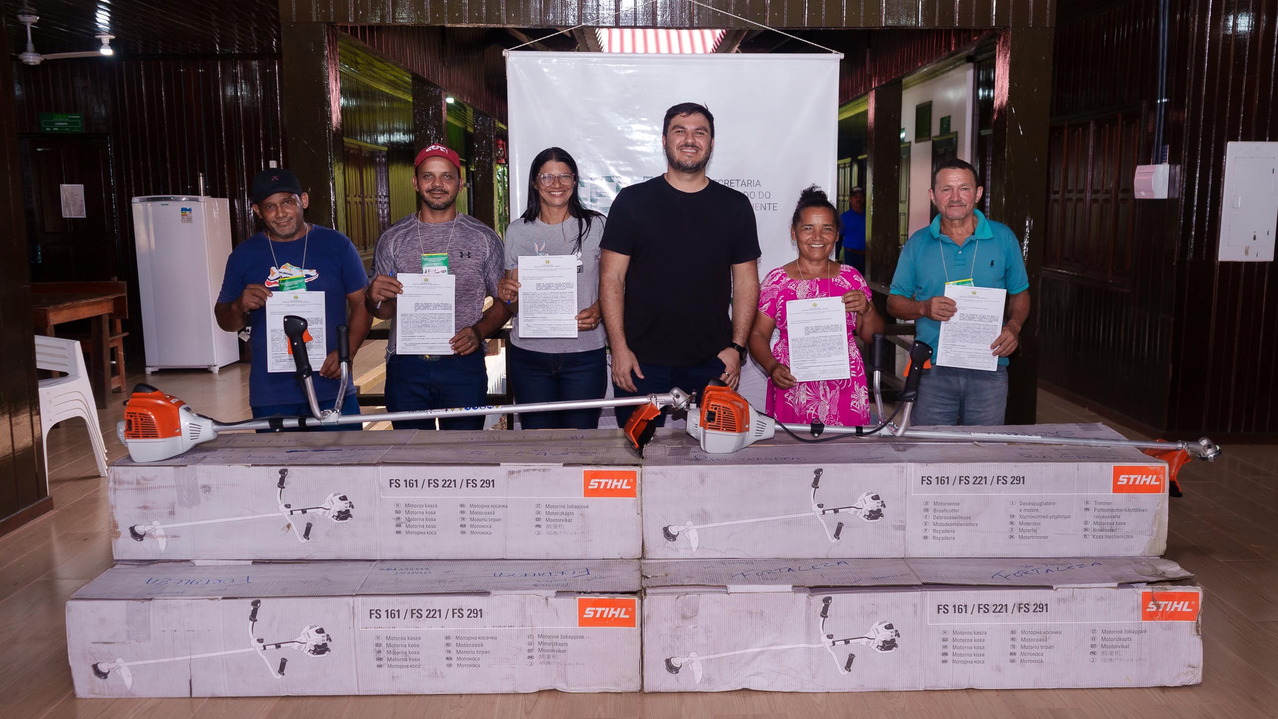 Durante a reunião foram entregues dez roçadeiras, adquiridas por meio de emenda parlamentar da ex-deputada federal Vanda Milani. Os equipamentos foram destinados às seguintes associações: dos Pequenos Produtores Rurais do Seringal São Pedro, dos Pequeno Produtores Agroflorestais das Comunidades Mamoré e Maracanã; Agroflorestal do Baixo Gregório; Agroextrativista São Francisco de Assis e Fortaleza Acreana, apoiando as atividades produtivas da região.