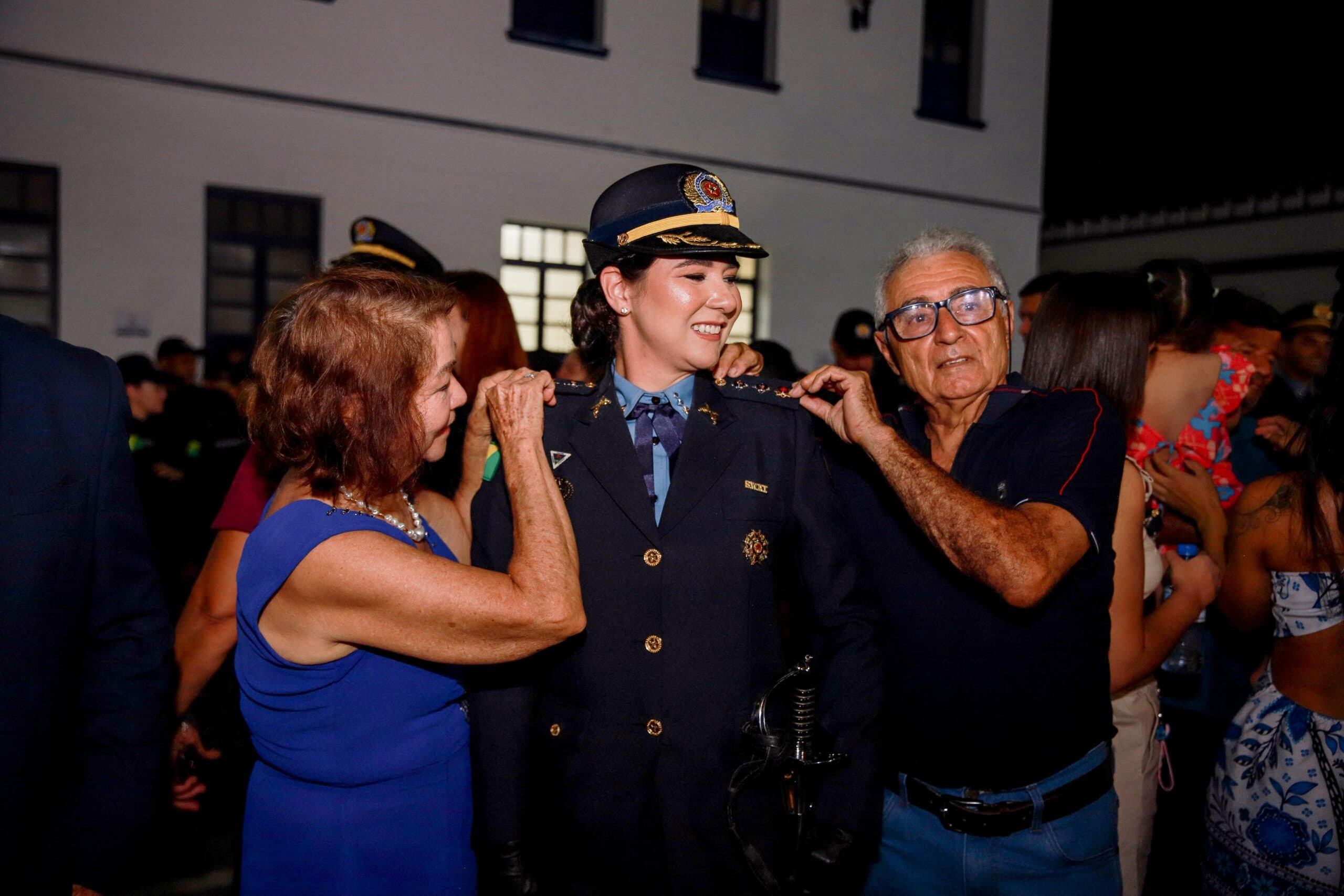 Gratidão e alegria compartilhada entre amigos e familiares. Na mesma cerimônia, nesta segunda, ao lado de Katianne estava o irmão dela, o capitão Karllos Antoniete. Aprovado no mesmo concurso e aluno da mesma turma de irmã, Karllos, também alcançou o posto de Major.