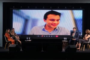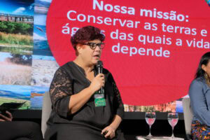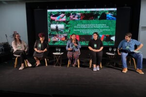 Rodrigo Freire moderou este painel que incluiu Laura Lamonica da Conservação Internacional Brasil, Karen Oliveira da The Nature Conservancy, Mirela Sandrini do World Resources Institute Brasil e Francisca Arara, secretária Extraordinária das Políticas Indígenas do Acre. Eles compartilharam casos de sucesso e estratégias eficazes na transformação de paisagens e práticas de conservação na Amazônia.