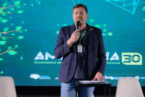 Bruno Pena, chefe-gerla da Embrapa Acre, liderou discussões sobre as estratégias inovadoras do setor privado para a restauração florestal, com participações de João Paulo Mastrangelo da Belterra, Caio Franco da Mombak, Gracie Selva da MyCarbon e Marcelle Grumberg da Black Jaguar Foundation. Este painel explorou como o engajamento do setor privado pode complementar os esforços públicos e de agências executoras, promovendo a sustentabilidade econômica e ambiental.
