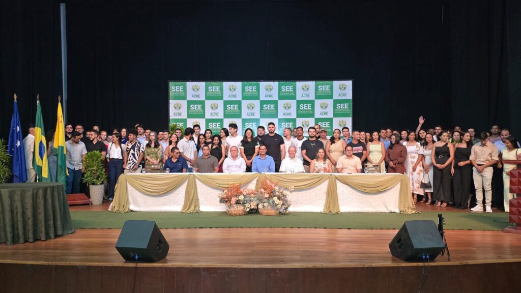 Profissionais aprovados no concurso da Secretaria de Estado de Educação do Acre (SEE) tomaram posse na tarde desta terça-feira, 10, no Teatro dos Náuas, em Cruzeiro do Sul. A cerimônia reuniu professores e servidores de apoio administrativo que passam a integrar, de forma efetiva, a rede estadual de ensino.