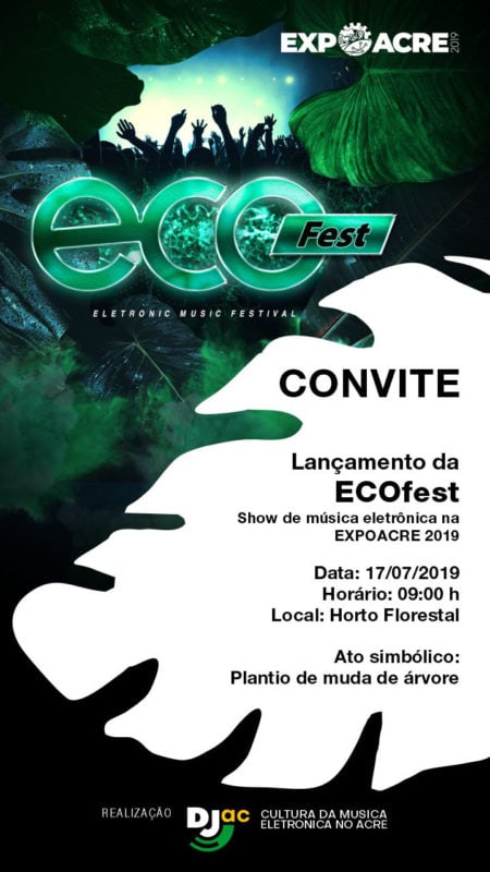Como abertura das festividades de música eletrônica na Expoacre 2019. Nesta quarta-feira, 17, às 9h, no Horto Florestal, haverá um ato simbólico de plantio de mudas. Todos os artistas locais que vão participar do evento assinarão seus contratos se comprometendo em dar ao público o seu melhor.