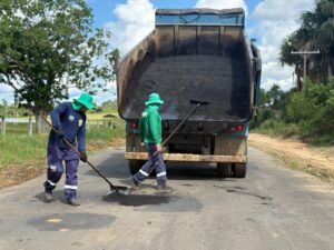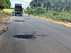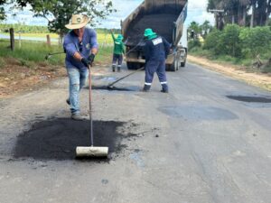 Já na AC-407, equipes do Deracre seguem atuando na operação tapa-buraco para recuperar trechos do pavimento que apresentam desgaste. Os serviços incluem a retirada e limpeza do asfalto danificado, seguida da aplicação e compactação de nova massa asfáltica nos pontos mais críticos da rodovia.