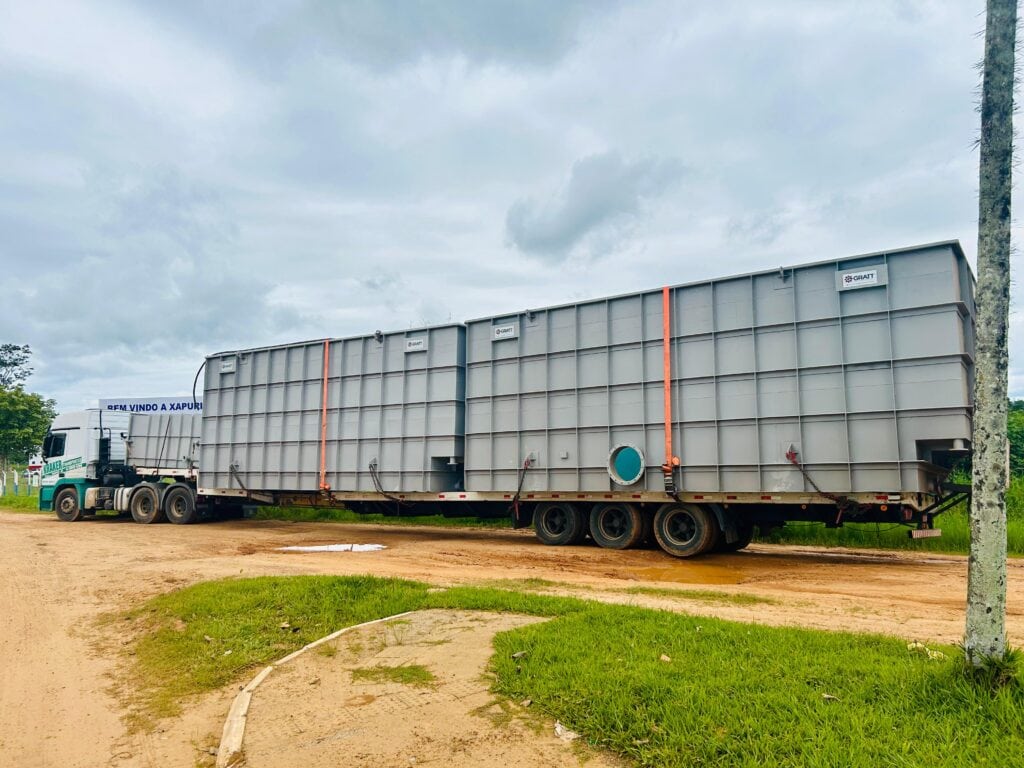 Os últimos carregamentos chegaram na última quinta-feira, 10. O investimento integra o Termo de Compromisso nº 005/2014, vinculado ao Sistema de Abastecimento de Água local, por meio do Contrato nº 018.2019-A, firmado com a empresa Gratt Indústria de Máquinas Ltda. A nova ETA será do tipo metálica convencional aberta, projetada para atender com eficiência as demandas da região.