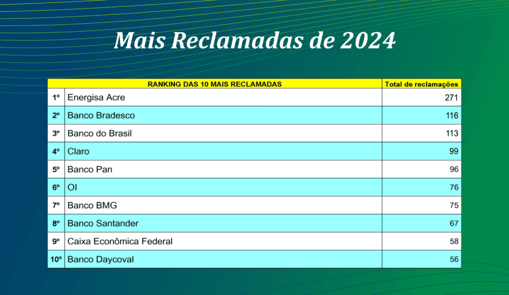 O Instituto de Proteção e Defesa do Consumidor (Procon) realizou nesta sexta-feira, 14, a divulgação do Cadastro e Reclamações Fundamentadas, com o ranking das empresas que obtiveram o maior número de queixas no ente durante o ano de 2024. O evento faz parte da Semana do Consumidor, sendo realizado na sede do instituto.