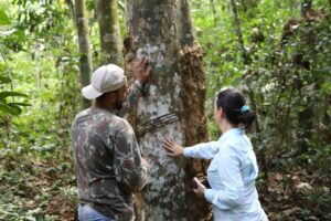 Erika Gouveia conheceu uma das iniciativas financiadas pelo Reino Unido, por meio do Programa REM, que concede incentivo financeiro às famílias que têm como principal fonte de renda o extrativismo.