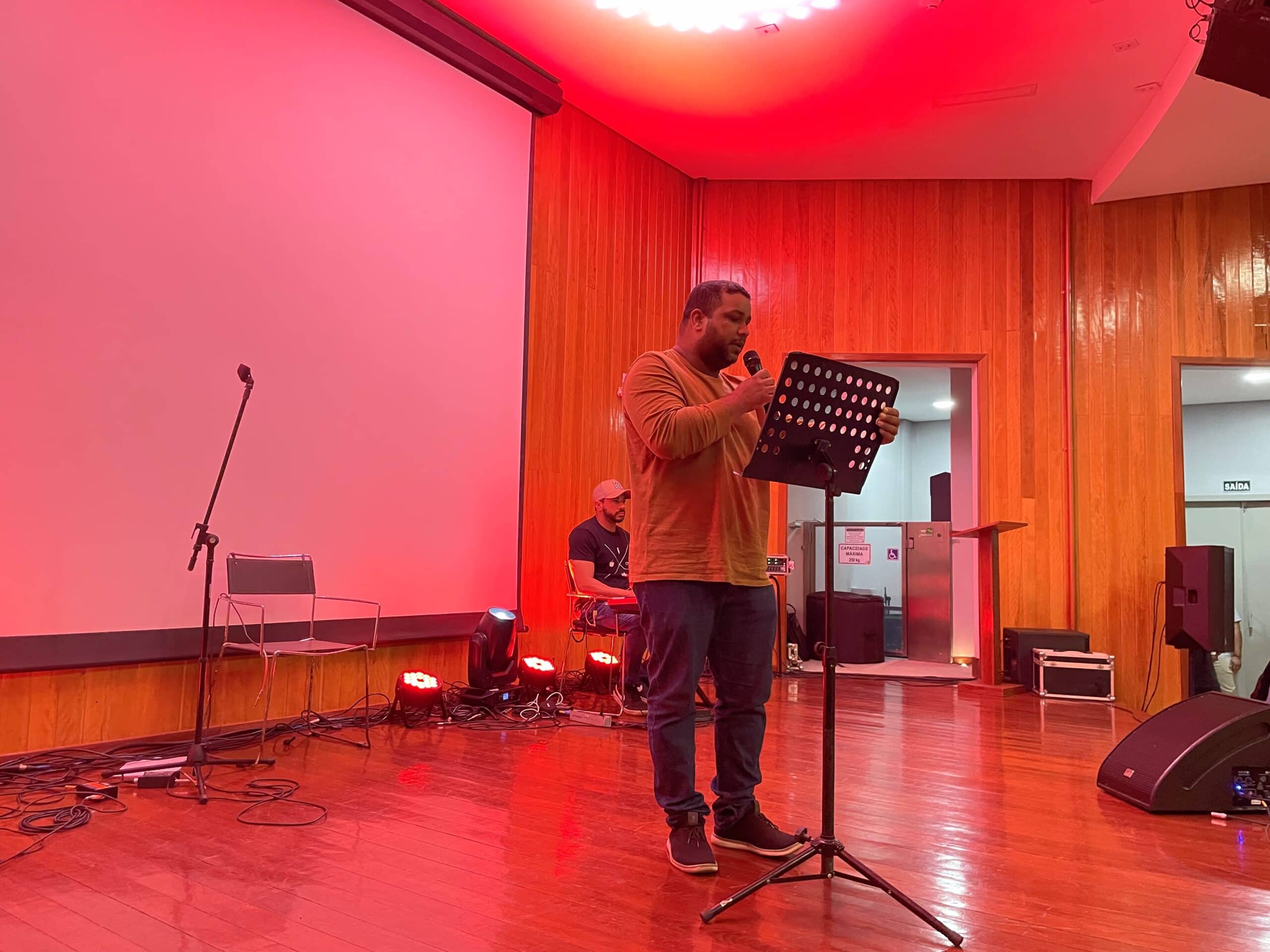 O servidor John Fagner, da Secretaria de Indústria, Ciência e Tecnologia (Seict), apresentou um medley em homenagem a artistas acreanos e declamou seu poema autoral “Orgulho de ser terceirizado”.