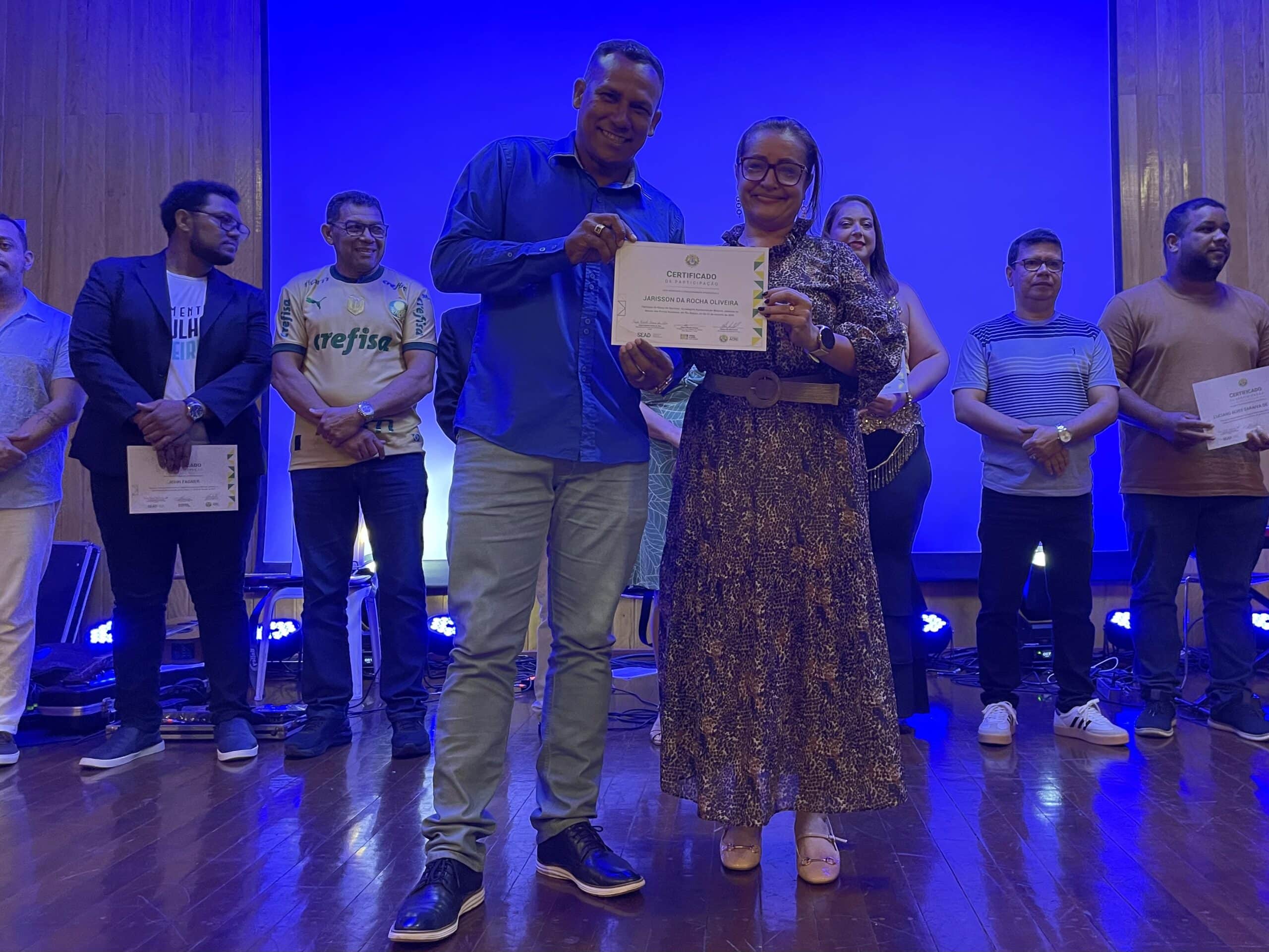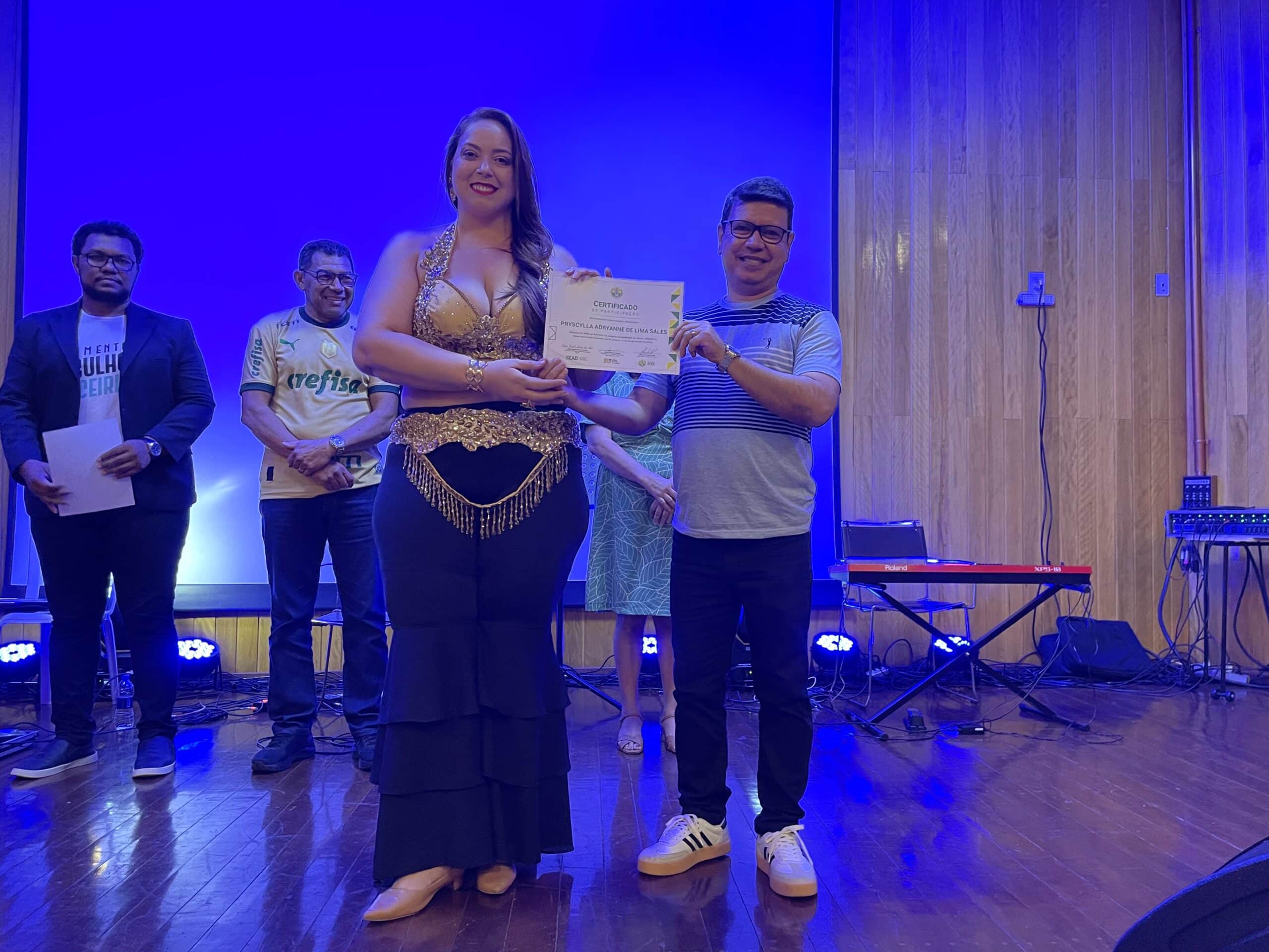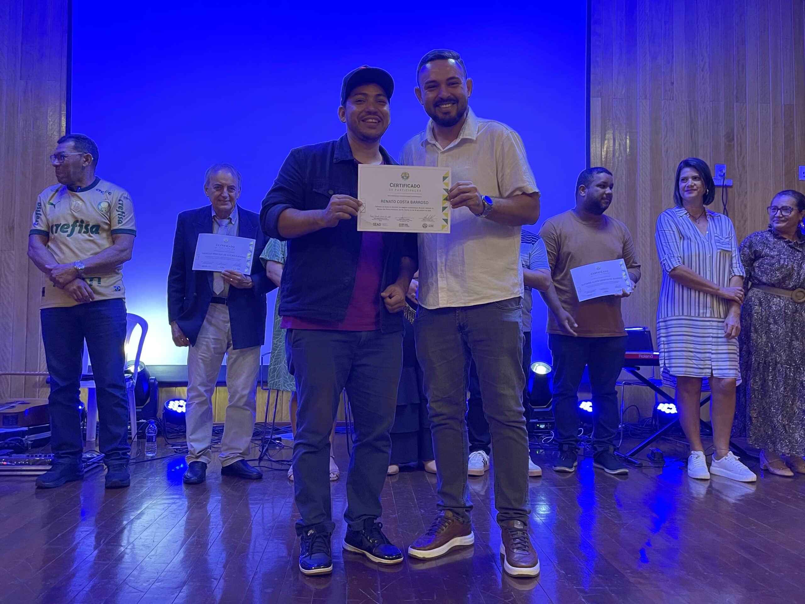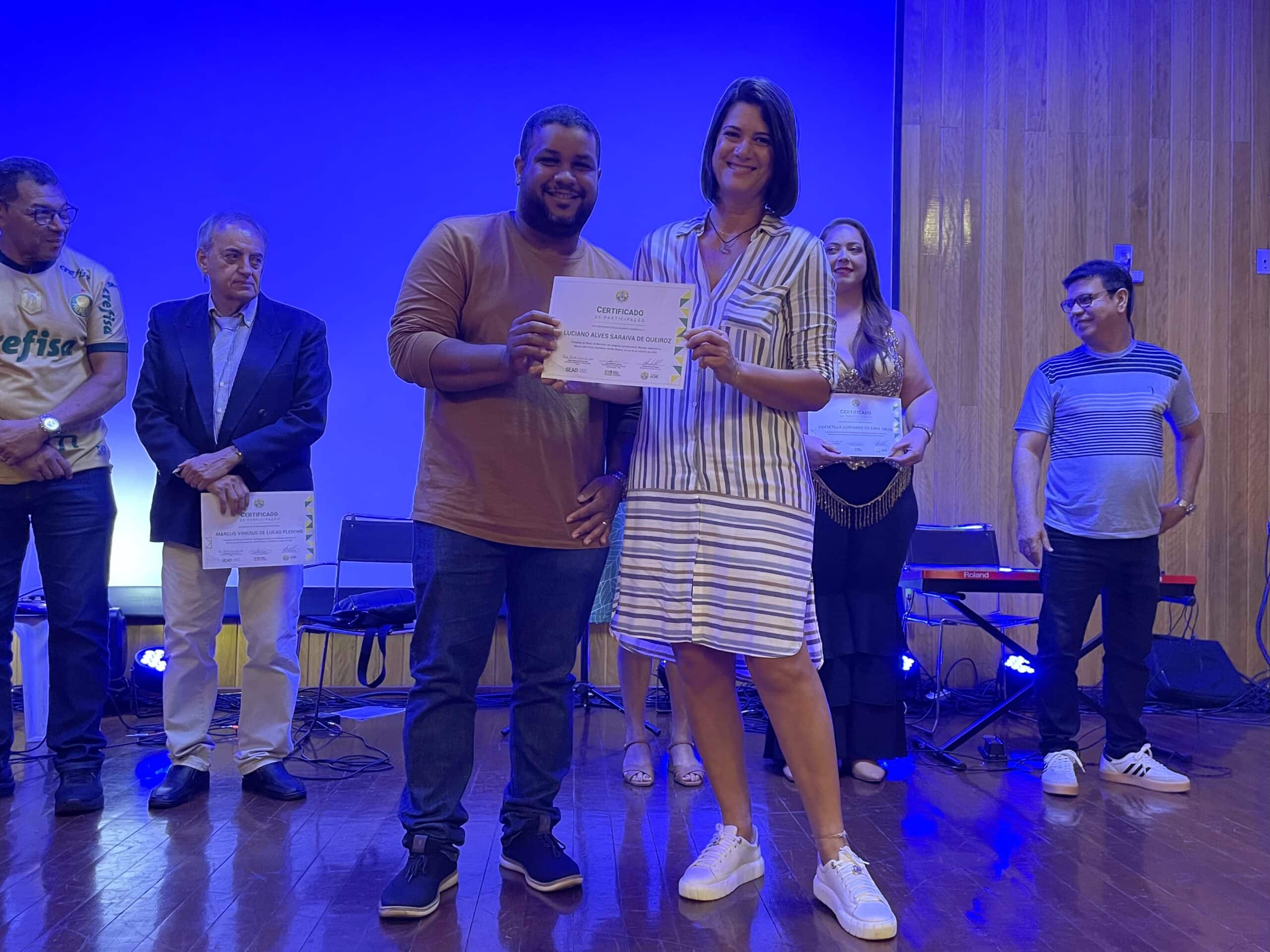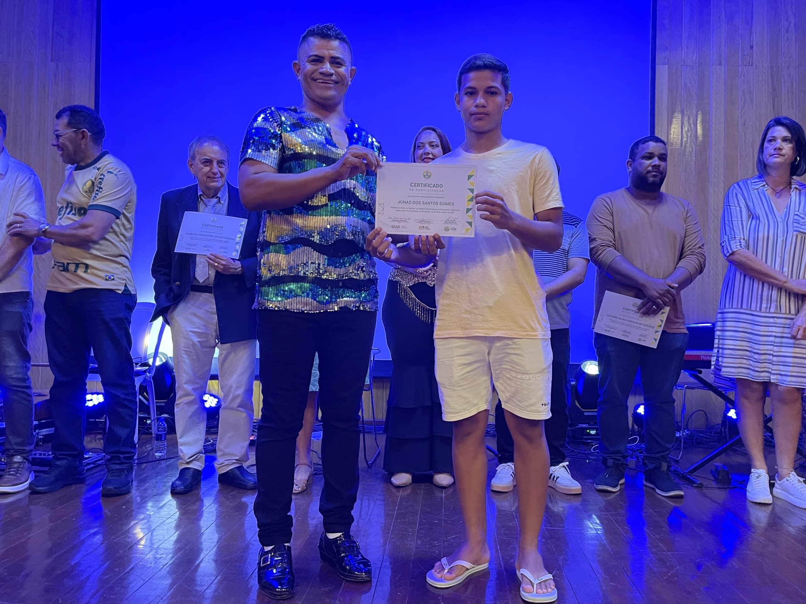 Ao final das apresentações, todos os participantes receberam certificados assinados pelo governador Gladson Camelí, pelo secretário de Administração, Paulo Roberto Correia, e pelo presidente da Fundação Elias Mansour, Minoru Kinpara, em reconhecimento à contribuição artística e cultural dos servidores.