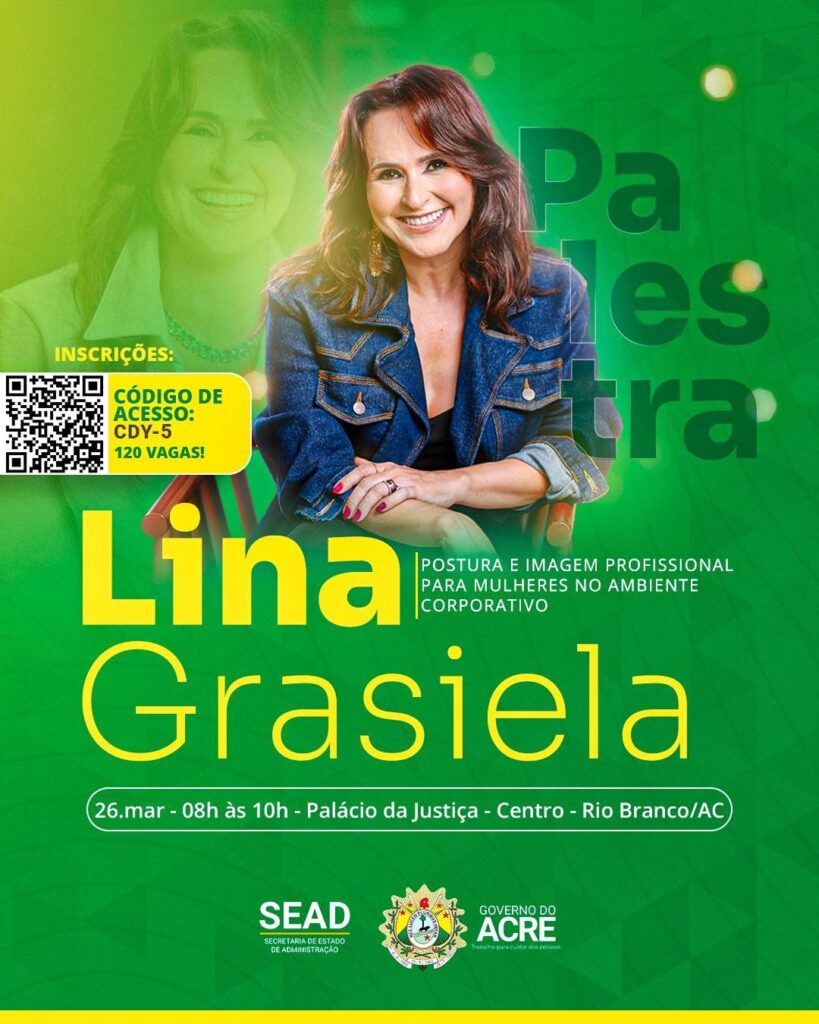 Em celebração ao mês dedicado à mulher, a Secretaria de Administração do Acre (Sead) está com vagas limitadas para a palestra “Postura e imagem profissional no ambiente corporativo”, que será realizada na próxima quinta-feira, 26, às 8h, no Palácio da Justiça, no Centro, em Rio Branco. A capacitação será ministrada pela cerimonialista Lina Grasiela do Nascimento, coordenadora de Cerimonial e Relações Públicas do Tribunal de Contas do Acre.