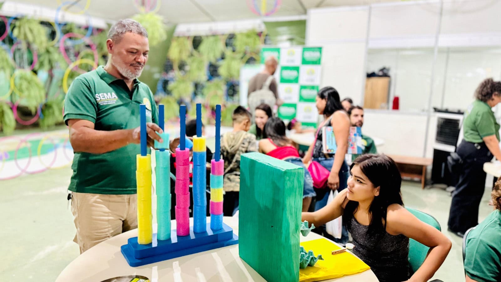 Atuação da educação ambiental na Expoacre 2025 fez sucesso entre o público infantil. Foto: Uêslei Araújo/Sete