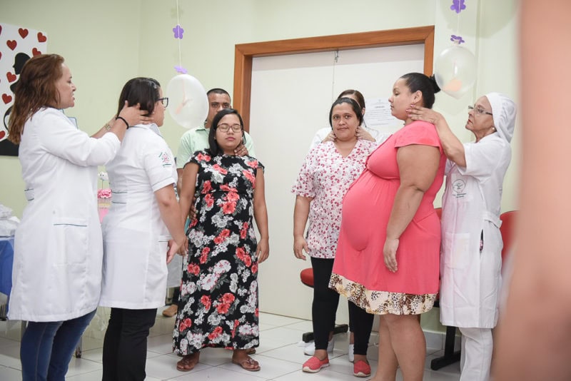 O cenário chamou a atenção de quem entrava na sala. O ambiente interativo e a música relaxante formavam o espaço criado especialmente para as gestantes atendidas na Maternidade Bárbara Heliodora.