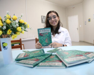 A jovem escritora Evelyn Martins, 15 anos, estudante do Ensino Médio do Colégio de Aplicação, identificada com altas habilidades, pelo Núcleo de Altas Habilidades/Superdototação (NAAH/S)