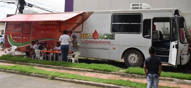 Nesta sexta-feira, 14, o ônibus do Centro de Hematologia e Hemoterapia do Acre (Hemoacre) esteve em frente à OCA, das 7 horas às 12 horas, realizando a primeira coleta do