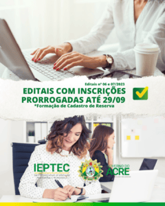 O governo do Acre, por meio do Instituto Estadual de Educação Profissional e Tecnológica (Ieptec), publicou no Diário Oficial de terça-feira, 26, informações sobre a prorrogação de dois processos seletivos