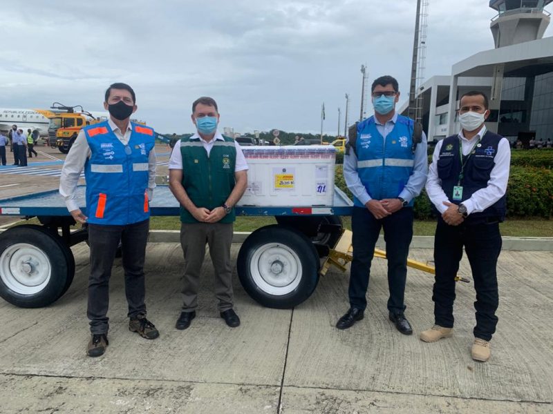 13.500 doses chegaram na quarta-feira, 24. As outras 8.400 chegam nesta quinta-feira, 25. Com a chegada de mais 21,9 mil doses de vacinas contra a Covid-19, sendo a Oxford-AstraZeneca e