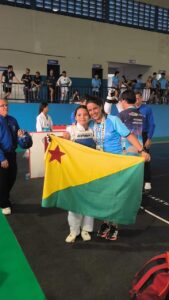 Liriel Dara, 13 anos, representa o Acre internacionalmente durante a disputa no Pan-Americano. A adolescente, que participou recentemente do Mundial de Taekwondo, na Coreia, compete agora na categoria cadete, no