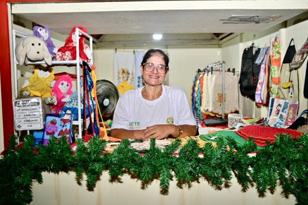 A programação inclui exposição e venda de produtos artesanais e gastronômicos. A artesã Lucimeire Barbosa Rocha, professora e crocheteira, apresenta parte do trabalho que estará disponível durante todo o período festivo. “Quero ficar até o último dia. Meu nicho é moda casa: tenho peças para banheiro, cozinha, capas de galão, sousplat, além de itens em tecido bordado e bonecas de pano para alegrar a criançada”, contou.