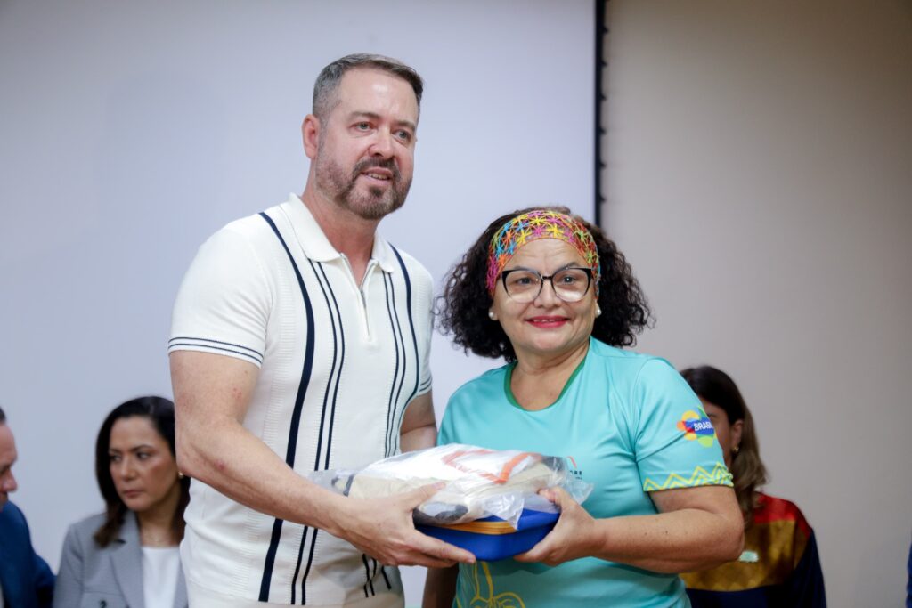 “Hoje é um dia muito especial. Estamos entregando os kits para os profissionais de turismo, em parceria com o Conselho Estadual de Turismo e o governo do Estado do Acre”. Foto: Neto Lucena/Secom