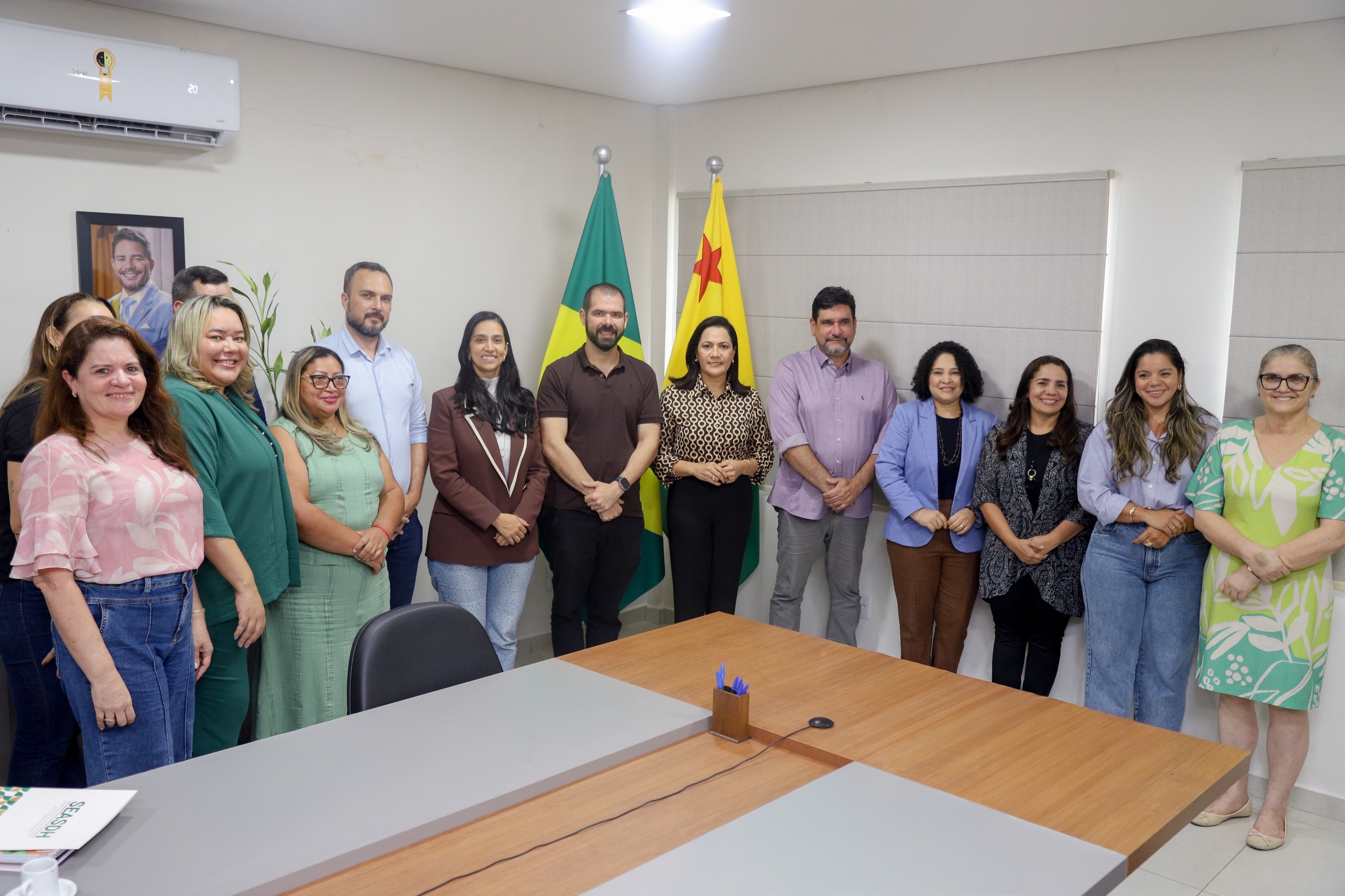 Participaram do encontro o secretário de Estado de Saúde, Pedro Pascoal, a secretária adjunta de Assistência Social e Direitos Humanos, Amanda Vasconcelos, o secretário adjunto de Educação, Reginaldo Prates, a chefe de Gabinete da SEASDH, Sandra Amorim, além de equipes técnicas da SEASDH, Secretaria de Educação (SEE) e Secretaria de Saúde (Sesacre).